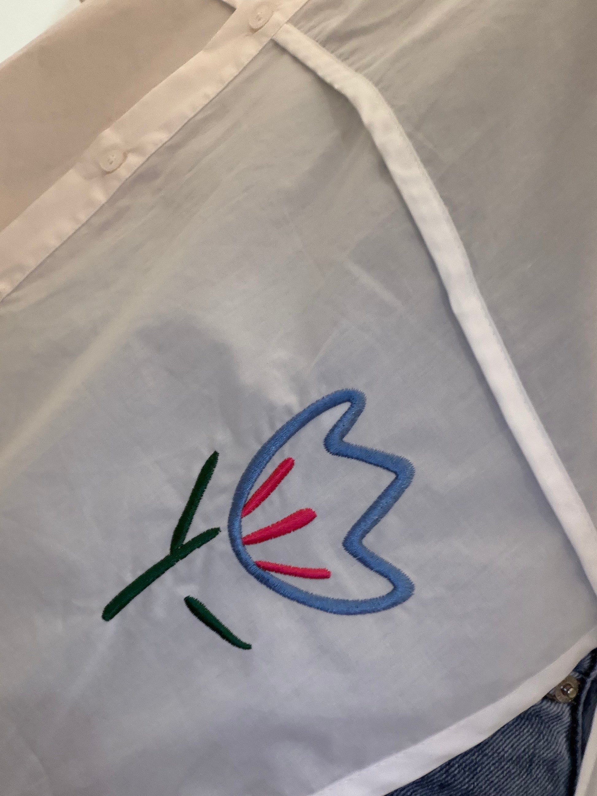 Découvrez notre élégante chemise en popeline, ornée de délicates broderies florales. Ce vêtement allie style et confort, parfait pour toute occasion. Laissez-vous séduire par la beauté de ses détails raffinés et ajoutez une touche de fraîcheur à votre garde-robe !